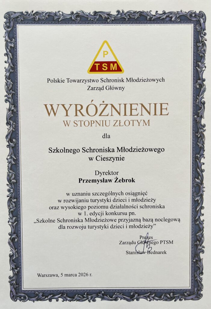 W dniu 5 marca 2026 r. w Warszawskim Centrum Sportu Młodzieżowego „Agrykola” miała miejsce konferencja podsumowująca Finał I Ogólnopolskiego Konkursu Schronisk Młodzieżowych. który odbył się pod hasłem „Schroniska młodzieżowe – Miejsca przyjazne dla rozwoju turystyki dzieci i młodzieży”. Konferencja została zorganizowana przez Zarząd Główny PTSM a honorowy patronat objęła Minister Edukacji.